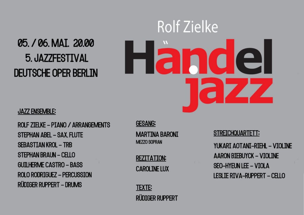 An inspired fresh view upon Georg Friedrich Händel is opend by Rolf Zielke´s Handel Jazz. The pianist from Berlin grew up with Handel´s music – and encounters him again as a professional well known musician: Zielke compares the live of one of the first independent “freelance” composer and entrepreneur with modern legendary jazzmusician´s vita.